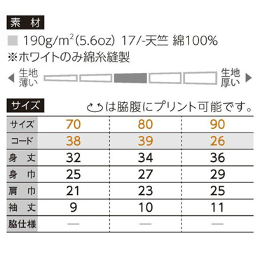 組合せの幅広がる色展開が決め手 ¥1000~5.6オンス ベビーTシャツ