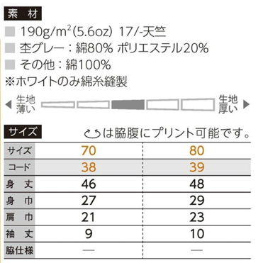 簡単に着替えができるショートロンパス ¥1,300~5.6オンス ヘビーショートロンパス